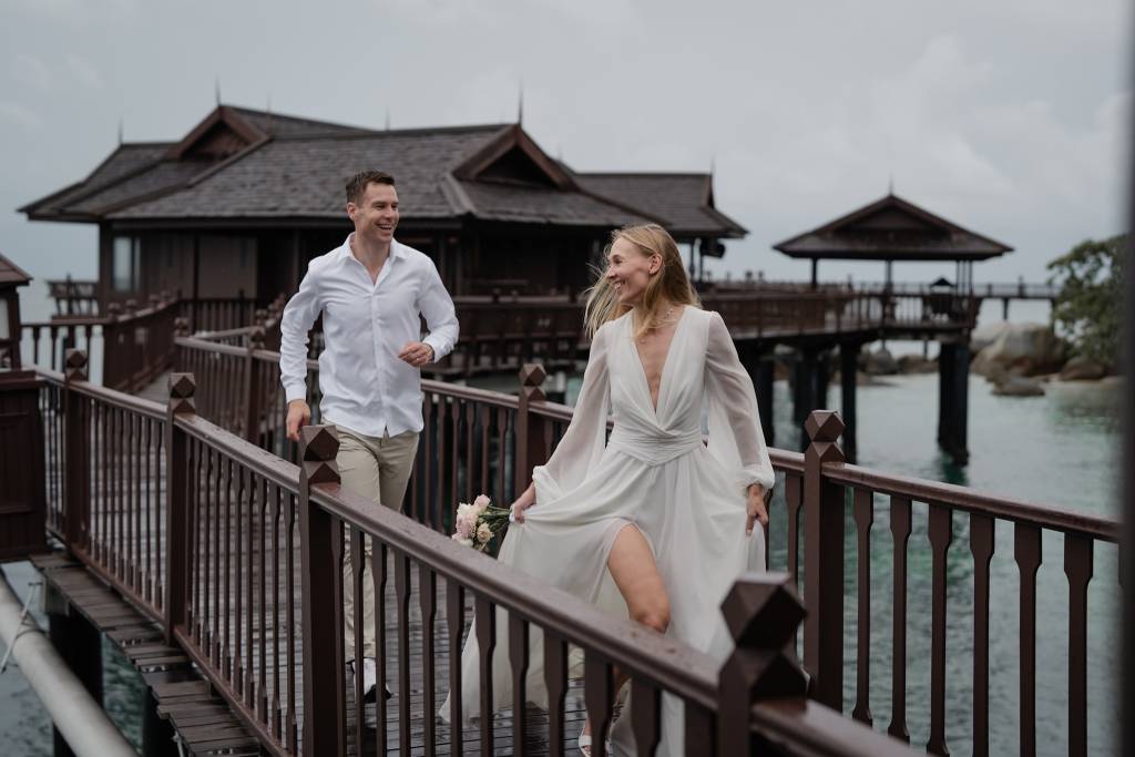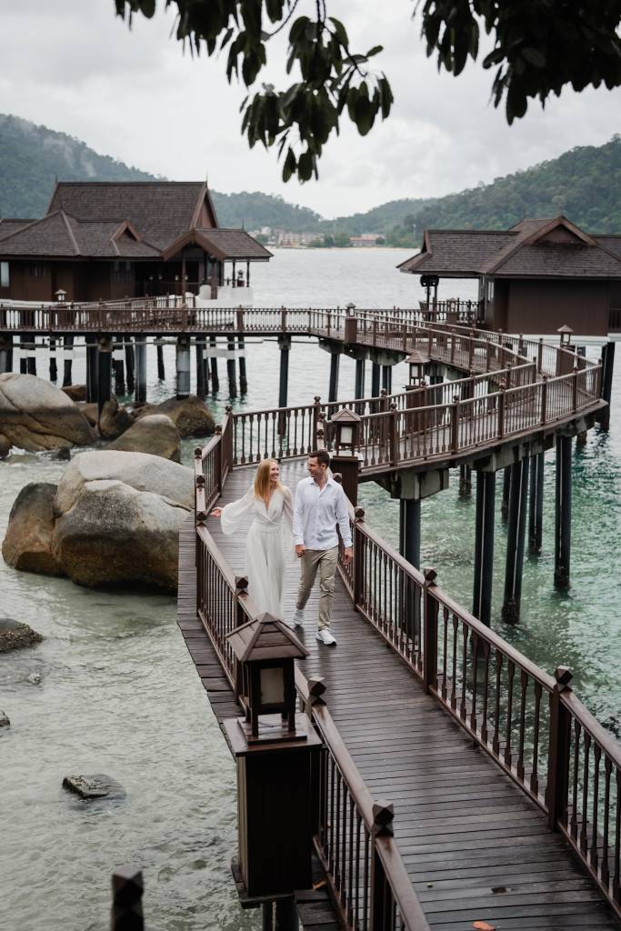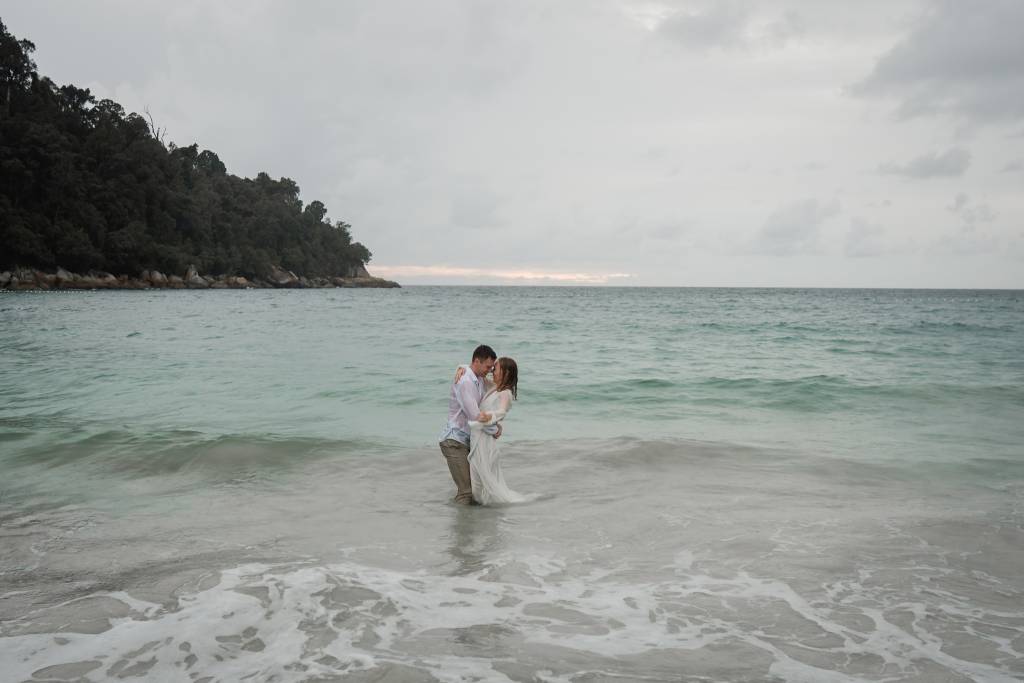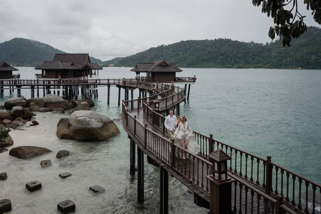 This beautiful pre-wedding photoshoot at Pangkor Laut Resort became one of my most unforgettable sessions. As the rain began to fall gently over the island, my couple embraced the moment with pure joy and love. Instead of hiding from the weather, they danced, laughed, and held each other close—creating the most dreamy and cinematic photos. The soft rain, lush greenery, and private beaches of Pangkor Laut Resort made every frame look magical and intimate. If you’re looking for a unique and romantic pre-wedding photoshoot in Malaysia, Pangkor Laut offers the perfect blend of luxury, nature, and breathtaking scenery, even—if not especially—on a rainy day.