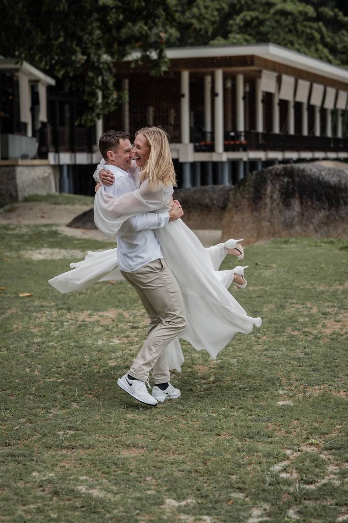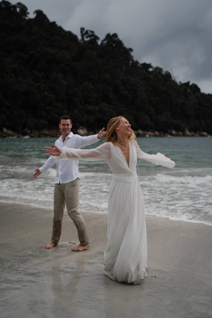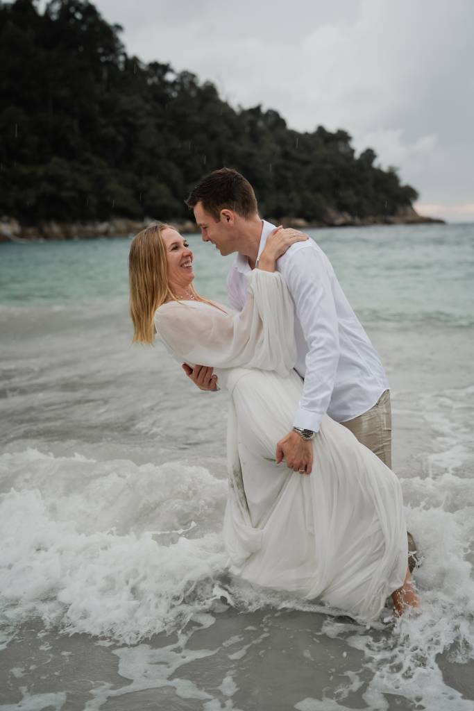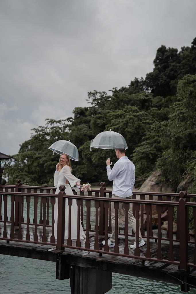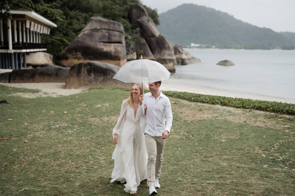 This beautiful pre-wedding photoshoot at Pangkor Laut Resort became one of my most unforgettable sessions. As the rain began to fall gently over the island, my couple embraced the moment with pure joy and love. Instead of hiding from the weather, they danced, laughed, and held each other close—creating the most dreamy and cinematic photos. The soft rain, lush greenery, and private beaches of Pangkor Laut Resort made every frame look magical and intimate. If you’re looking for a unique and romantic pre-wedding photoshoot in Malaysia, Pangkor Laut offers the perfect blend of luxury, nature, and breathtaking scenery, even—if not especially—on a rainy day.